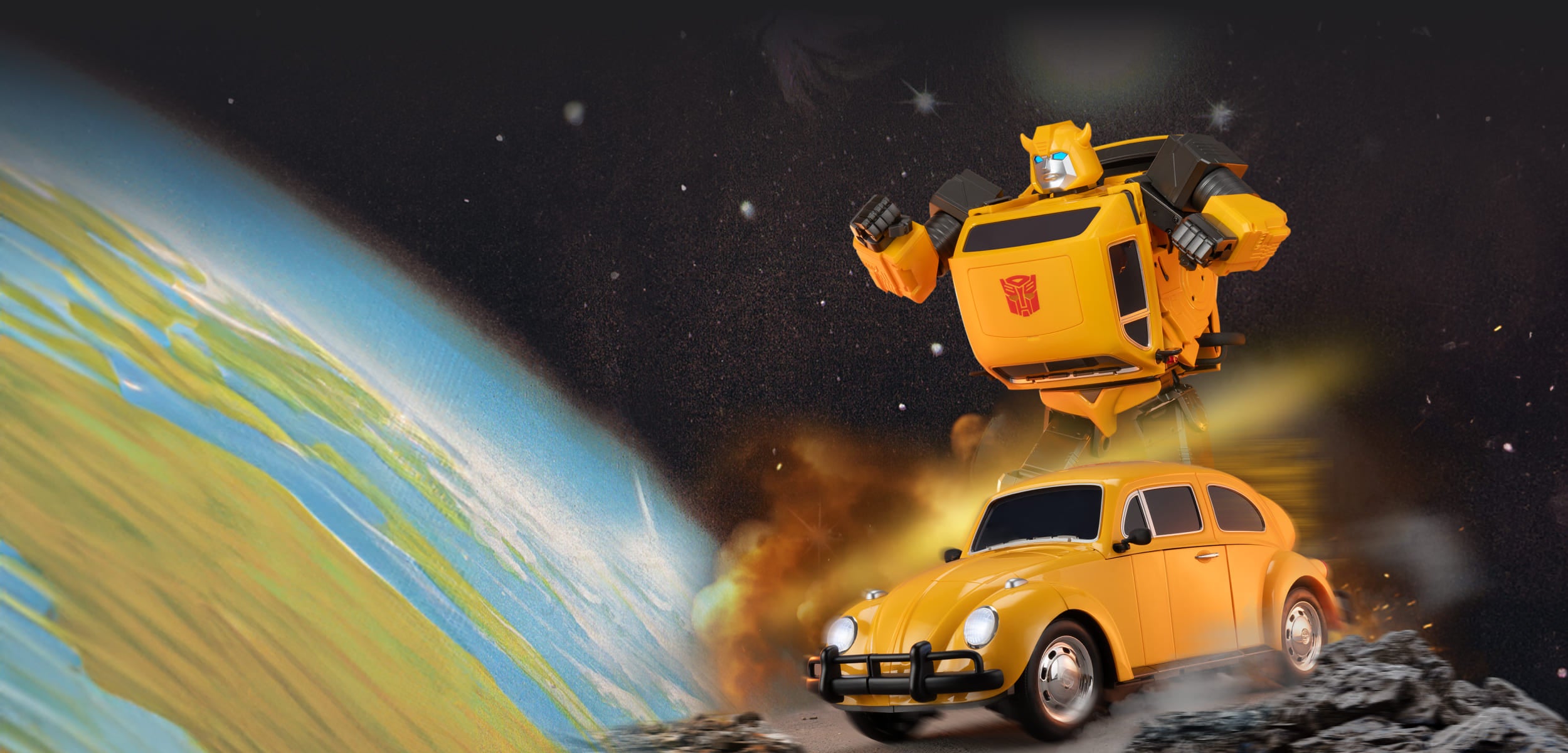 Robosen Bumblebee brings the iconic Autobot to life with seamless auto transformation from robot to yellow Volkswagen Beetle.