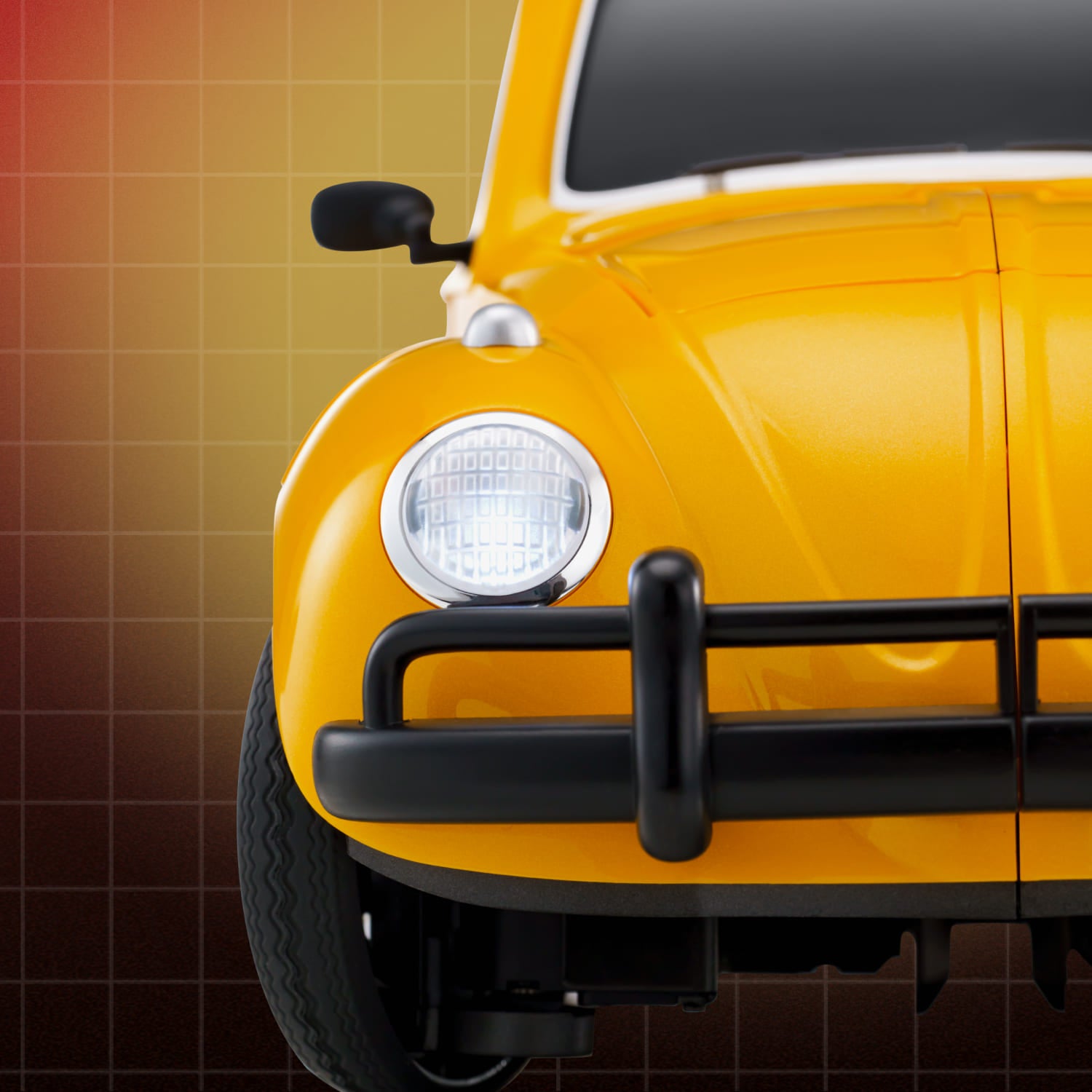 Premium paintwork captures the classic Beetle look with a nostalgic touch.