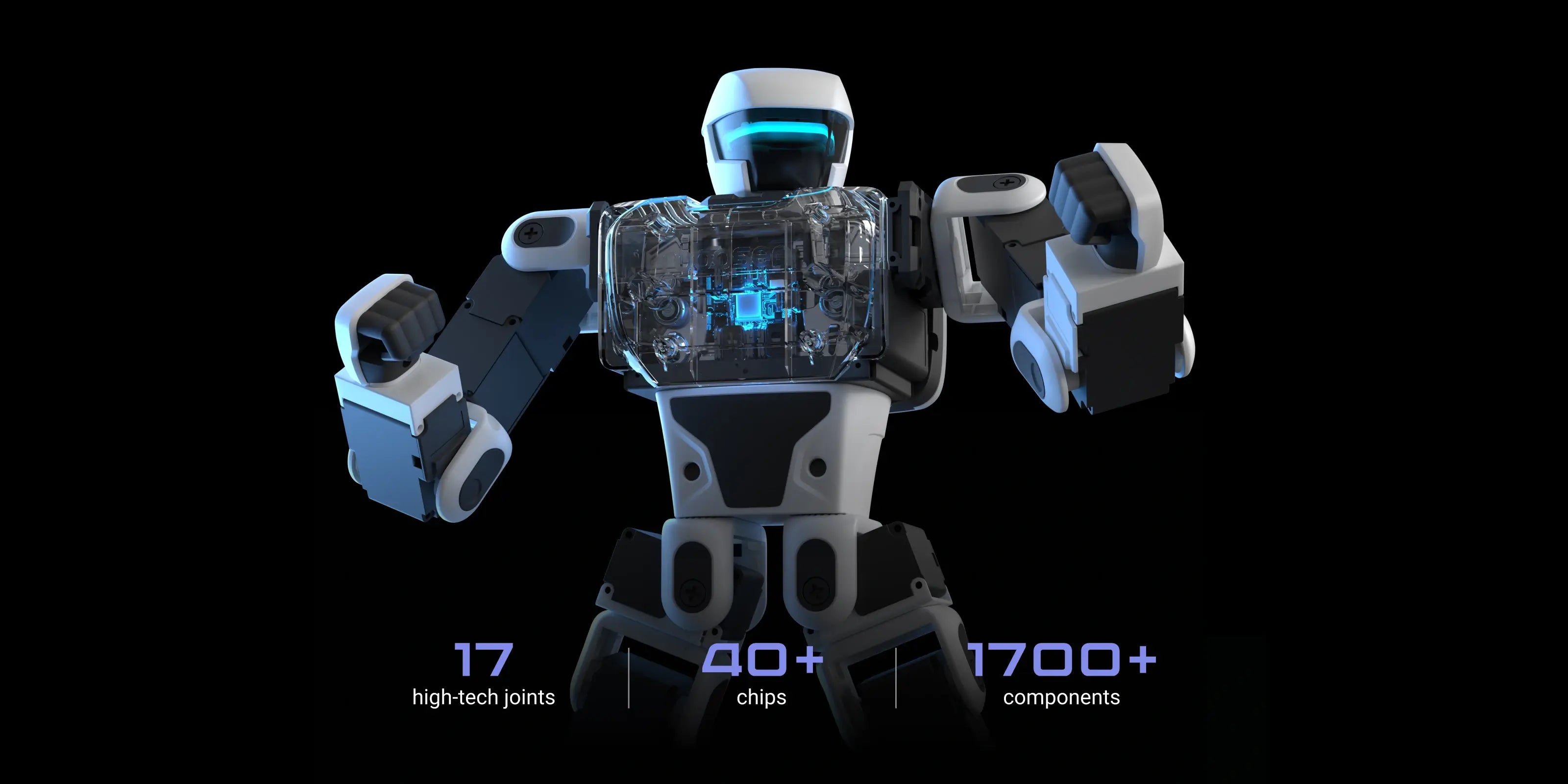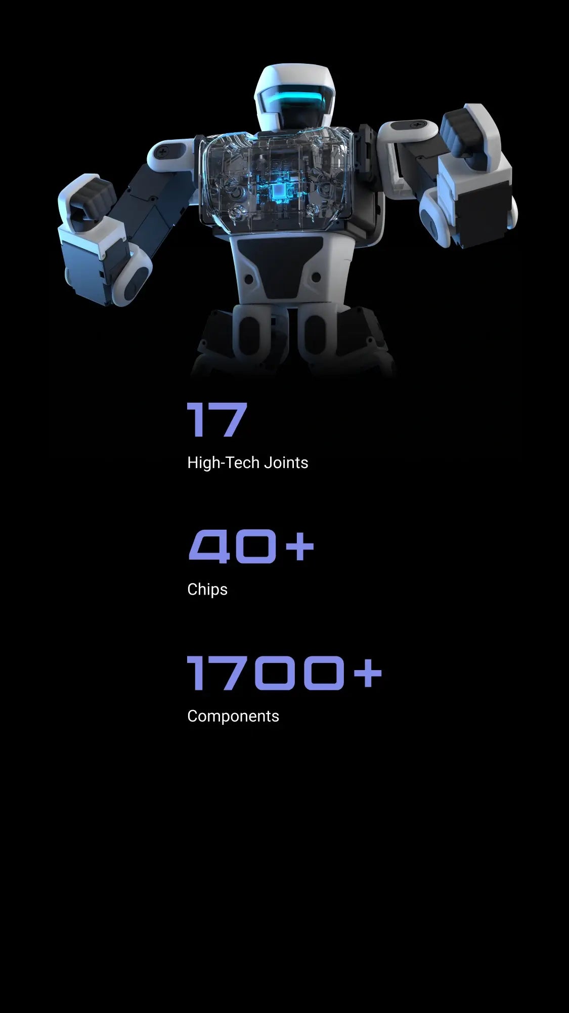 Aluminum alloy frame structures,17 servo motors (Head ×1/Hands 3×2/Legs 5×2)