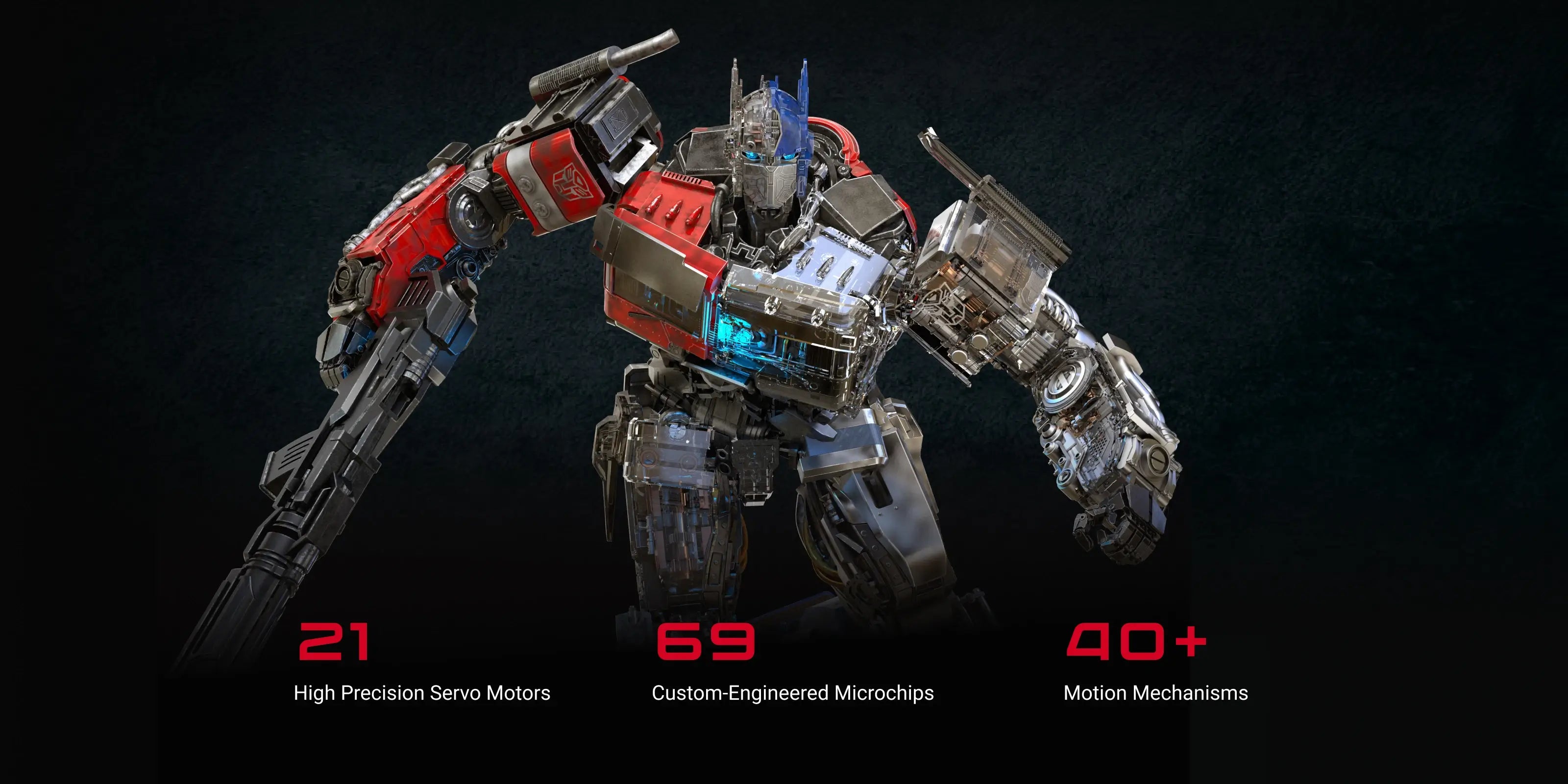 Robosen's Signature Series robots are designed to bring the cinematic experience one step closer to reality. The hyper-realistic cinematic rendering can now be visualized on every individual part of ROTB Optimus Prime, which were all painstakingly hand painted to bring the movie magic alive. A balance was achieved to infuse Robosen's robotics engineering to make the experience still dynamic and interactive, while preserving movie authenticity.